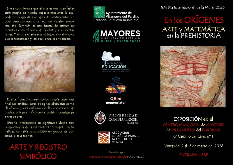 Ya se puede visitar en el Centro de Mayores de Villanueva del Pardillo (Madrid), la exposición «En los Orígenes. Arte y Matemática en la Prehistoria», que completaremos el viernes 13, a las 11:30 h, con la conferencia «¿Fueron mujeres ‘los primeros matemáticos’?». Entrada libre a exposición y conferencia hasta completar el aforo.