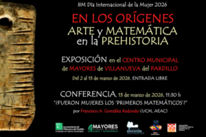 Ya se puede visitar en el Centro de Mayores de Villanueva del Pardillo (Madrid), la exposición «En los Orígenes. Arte y Matemática en la Prehistoria», que completaremos el viernes 13, a las 11:30 h, con la conferencia «¿Fueron mujeres ‘los primeros matemáticos’?». Entrada libre a exposición y conferencia hasta completar el aforo.